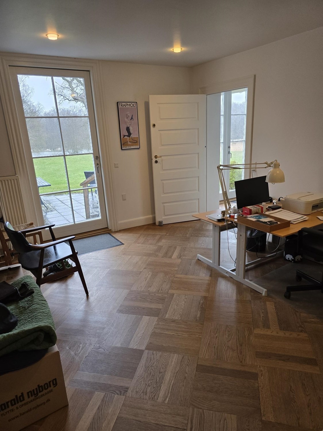 Vi udlejer den selvstændige sidebygning på 165m2 til Dønnerup Gods, lejemålet er i et plan med selvstændig indgang, 2 værelser og et gennemgangs værelse/kontor med udgang til egen terrasse, stort bad og toilet samt gæstetoilet.