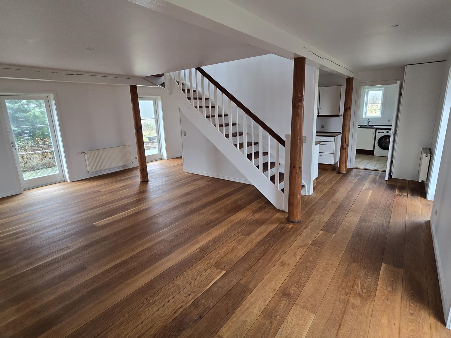 Fra alle vinduer og døre i villaen er der udsigt til skoven, som det også fremgår af billederne.